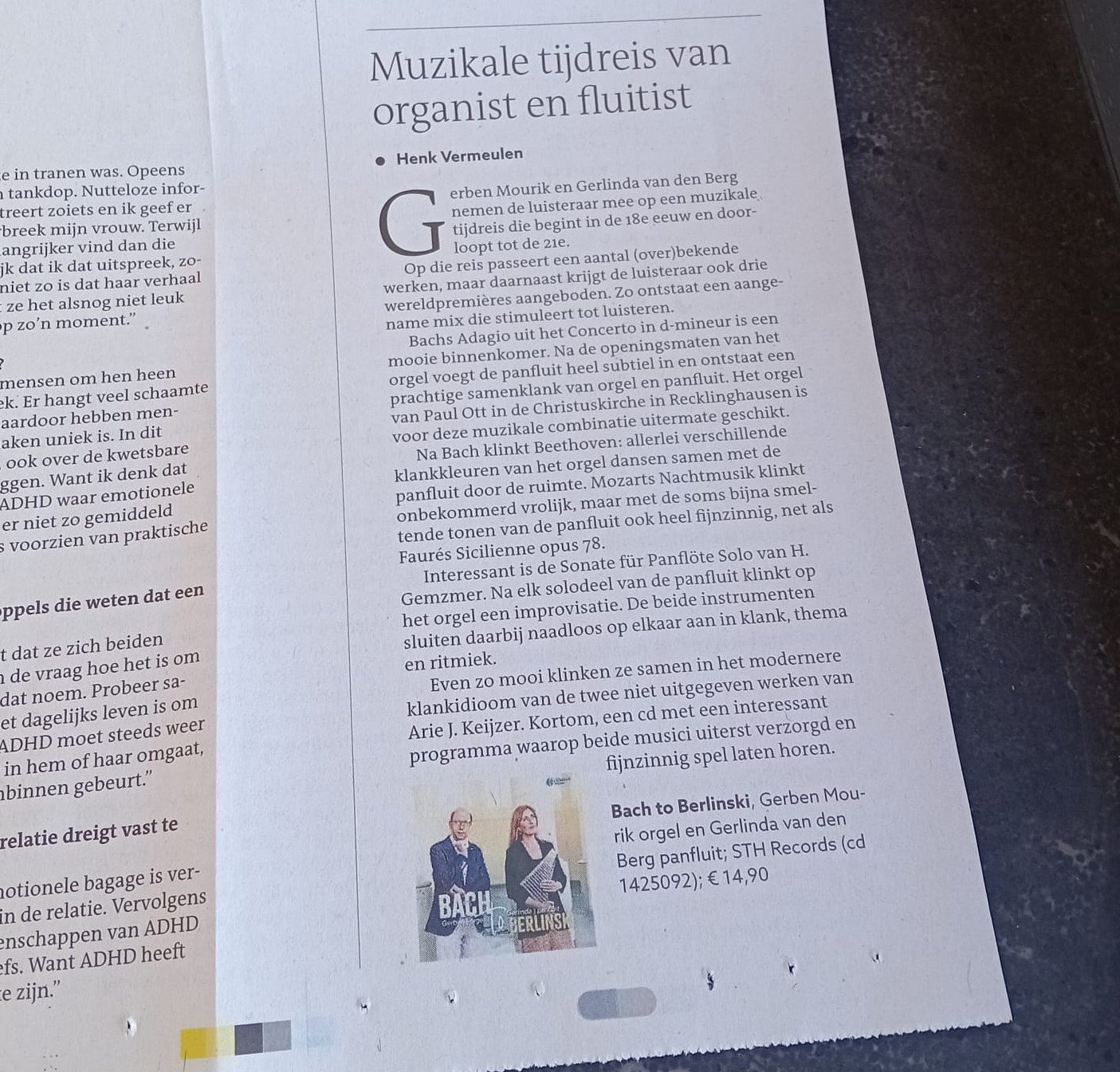 Bach to Berlinski Sep 6 Written By Gerlinda van den Berg New album for panflute & organRecording 2024 in Recklinghausen (DE)Tracks coming soon Recensie RD Gerlinda van den Berg